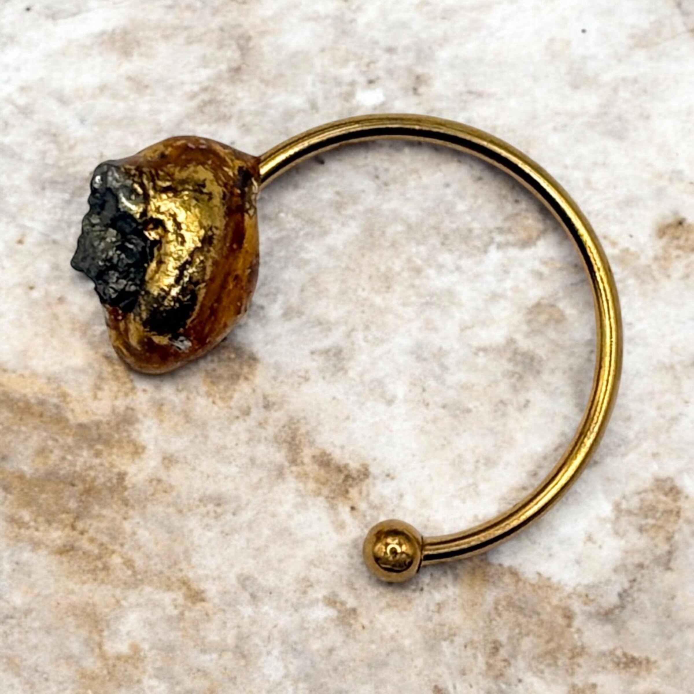 Pierścionek Piryt to wyjątkowy dodatek, który łączy elegancję z naturalnym pięknem minerałów. Wykonany z trwałej i odpornej na zarysowania złotej stali szlachetnej, gwarantuje długowieczność i komfort noszenia. Centralny kamień – piryt – symbolizuje bogactwo i siłę, dodając wyrafinowanego charakteru każdej stylizacji. Idealny zarówno na co dzień, jak i na wyjątkowe okazje, podkreśli Twoją indywidualność i styl.